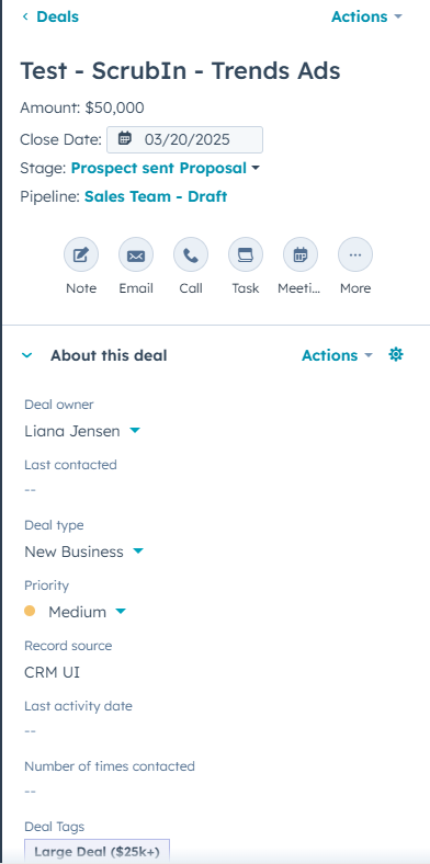 Deals - View any associated Deals currently connected to this specific deal, contact or company.