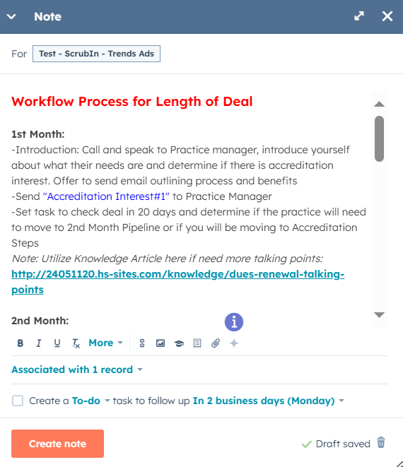 Step 4: Add the Workflow for AS's to follow as a Note in the Deal