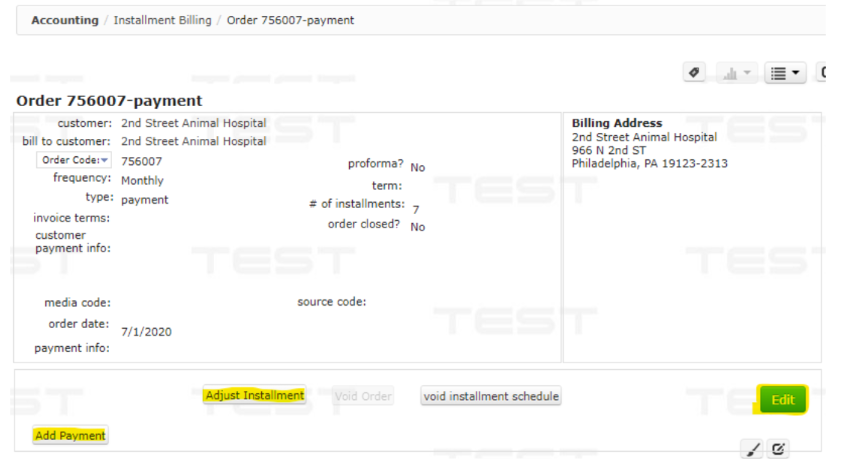 We will have an automated process that runs regularly to process installment payments on or around their due date if they are set up for automatic payments. Please set up all order for auto pay, unless special circumstances prevent it.