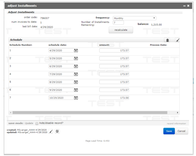 1. To adjust the installment payment schedule, click the “Adjust Installment” button from the order profile page.