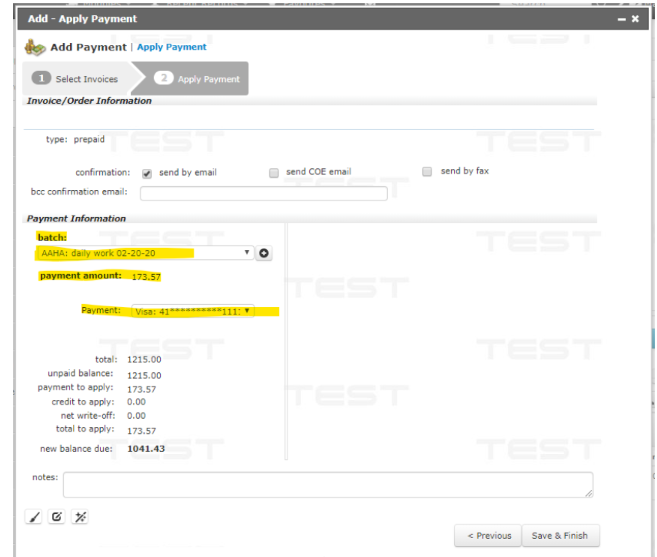 2. On the “Add – Select Invoices to Pay” popup, you should see the “payment to apply” field already has the installment payment entered. Click the “Next >” button.