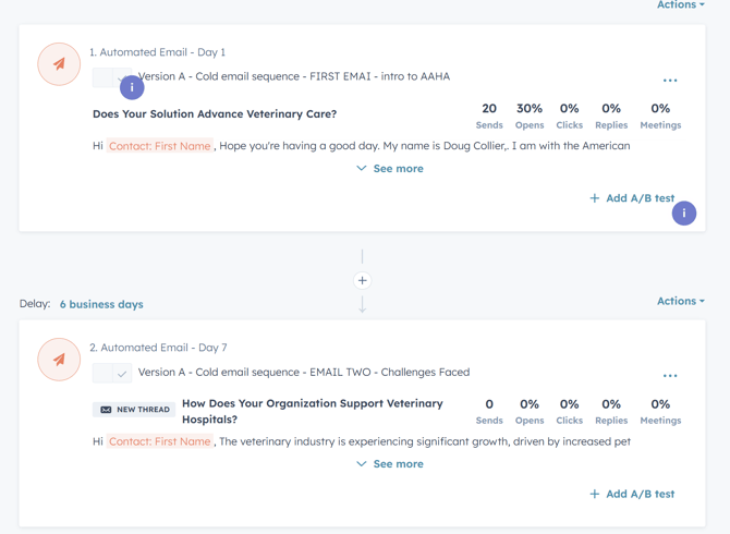 If you click on the name of a sequence, you can view the messages within it by clicking the steps tab.